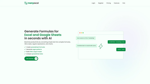 由人工智能驱动的工具,用于生成Excel和Google Sheets公式及脚本。