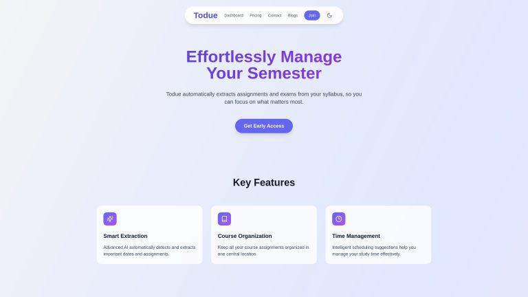 Todue自动将课程大纲加载到日历中,帮助学生高效组织和管理时间。