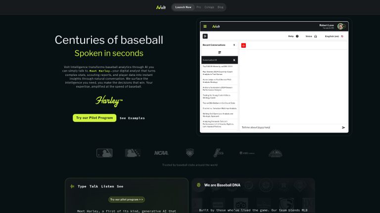 人工智能驱动的棒球分析平台,提供实时洞察和战略优势。