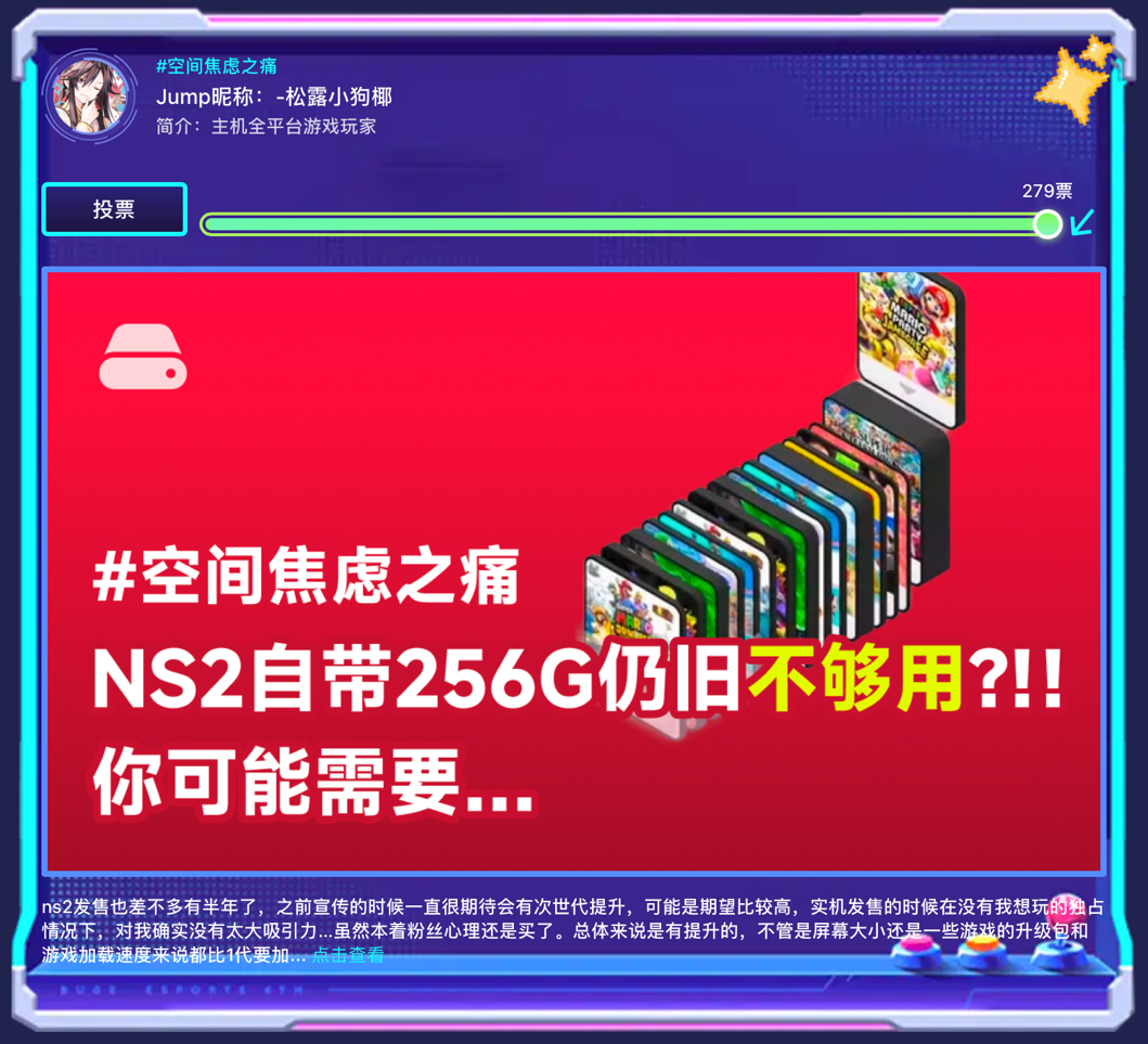 尽管活动上线不久,玩家的参与热情却异常高涨。目前社区投票情况呈现一边倒的趋势,“空间焦虑之痛”话题以279票遥遥领先,其票数甚至超过了位列第二的痛点话题的六倍。随着活动的深入,这一差距预计还将继续扩大。这充分表明,尽管Switch2在其他方面的升级令人惊喜,但存储焦虑已然成为玩家们面临的首要难题。