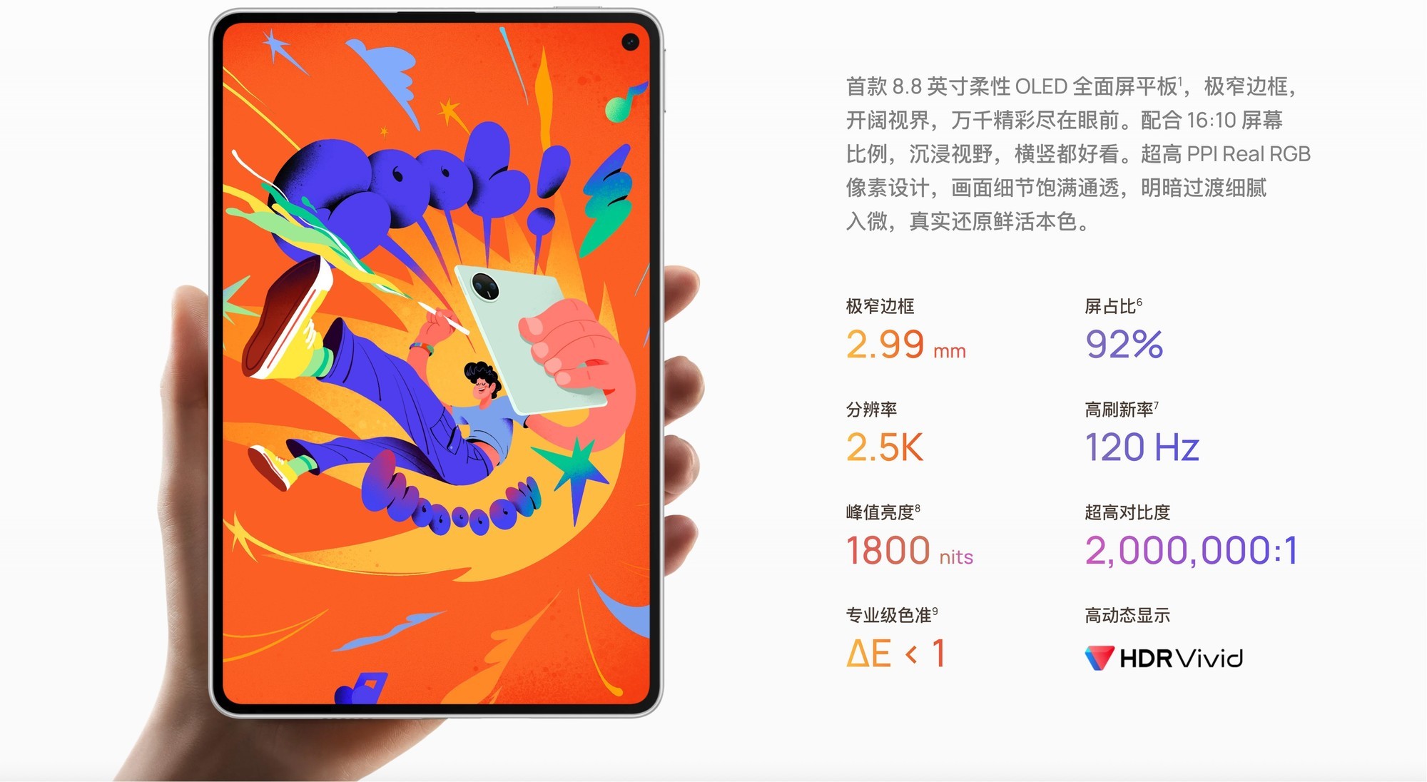 在屏幕体验上,MatePad Mini实现了“越级”表现。它配备了一块8.8英寸的柔性OLED云晰柔光屏,拥有1800nits的峰值亮度、120Hz的高刷新率以及2.5K分辨率。这块屏幕不仅在参数上超越了同类竞品(如iPad mini的LCD屏),更通过纳米蚀刻技术带来了出色的“纸感书写”体验,并拥有99%的环境光抗眩能力,兼顾了护眼与创作需求。