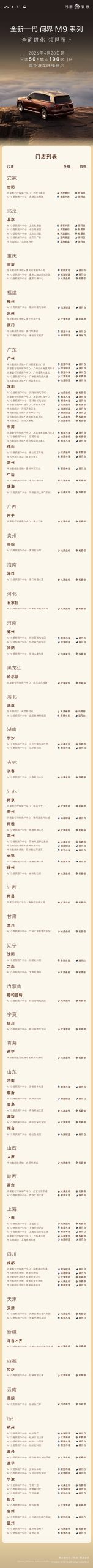 作为鸿蒙智行旗下旗舰车型,全新一代问界 M9 在智能化和豪华配置方面均有重点布局。虽然具体的价格和详细配置在此次信息中并未全部披露,但此次展车的密集铺设,预示着新车上市在即,并将快速触达潜在用户群体。