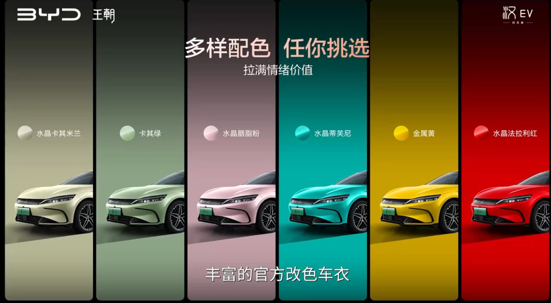 汉 EV 闪充版的车身尺寸与在售车型保持一致,长宽高分别为 4995 毫米、1910 毫米、1495 毫米,轴距为 2920 毫米,外观延续了“龙颜美学”设计理念,并提供多种车身配色选择。