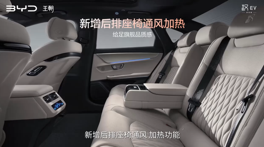 此外,汉 EV 闪充版在智能化配置上也进一步升级,搭载了“天神之眼”5.0 辅助驾驶系统,该系统基于“强化学习”的端到端大模型,并支持智能泊车功能。在用户关心的舒适性配置上,新增了后排座椅通风加热功能,提升了驾乘体验。