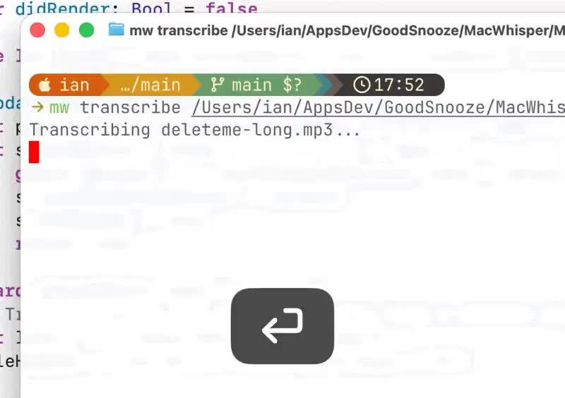新引入的 `mw` 命令行工具通过本地套接字与运行中的 MacWhisper 应用进行通信,能够无缝调用图形界面中已配置的引擎、模型和各项设置。用户可以利用 `mw` 来列出可用的转录模型、切换不同的配置、执行文件转录任务,并将转录结果通过管道(pipe)传递给其他程序进行进一步处理。这一设计极大地增强了工具的集成性和自动化潜力。